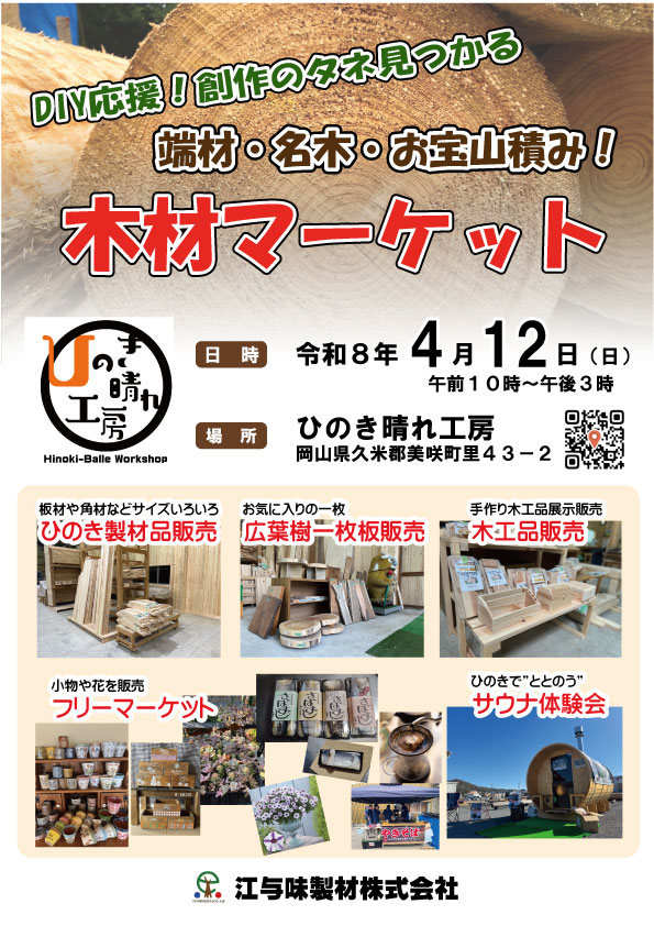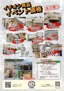端材・銘木・お宝山積み「木材マーケット」を開催します。